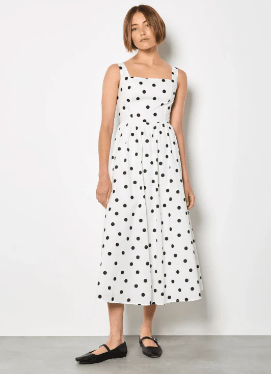 Review Apricot - Blk Polka Dot A-Line Dress