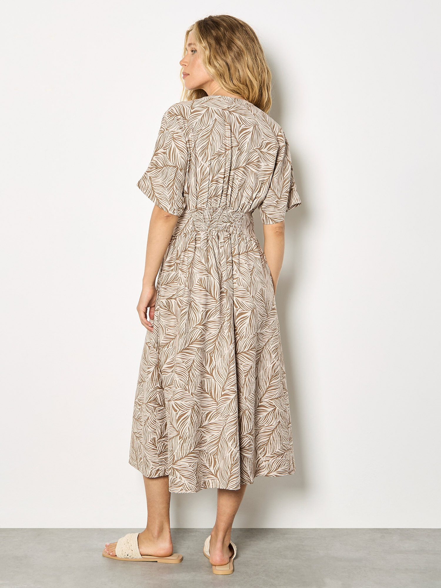 Review Apricot - Leaf Print Midi Shirt Dress