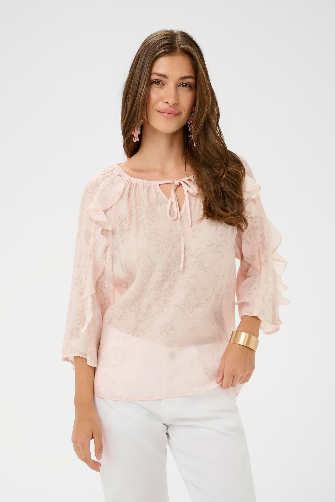 Review Cream - AMY 3/4 Ruffled Slv Blouse